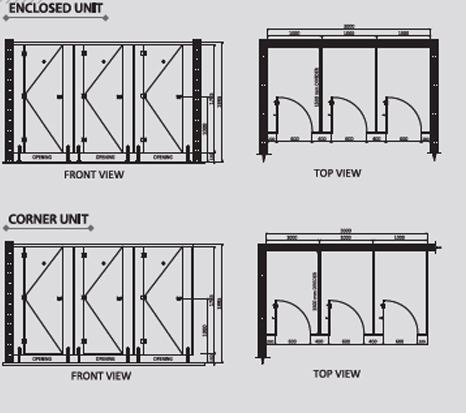 | Width of Cubicle | 1000 | 1500 |